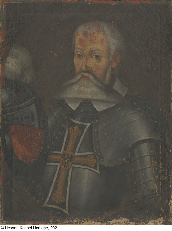 Aufkleber: Unbekannter Maler, Georg Daniel von Habel. geb 25.12.1592 in Lützelwig bei Fritzlar, gest. 29.5.1652 in Marburg) 1609 Eintritt i. d. DO 1639 Landkontur |
