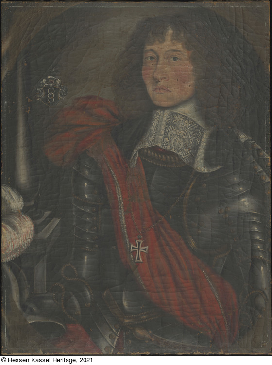 Aufkleber: Unbekannter Maler, Philipp Leopold von Neuhoff. (geb. 4.10. 1618 in Neuhoff/Grafschaft Mark, gest. 19.11.1667 in Griefstedt.) 1645 Eintritt i. d. DO. 1667 Statthalter u. Landkomtur in Marburg |