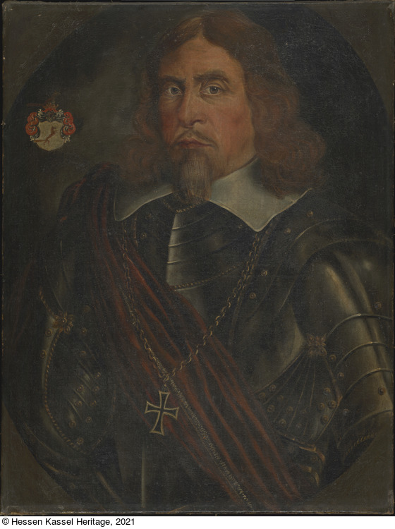 Aufkleber: Eigentum Univ. Museum Marburg L.; Stempel: Museum der Univer[...] Marburg/L. (Aufkleber); Aufkleber: Gen. Katal. No. 11262; Aufkleber: Löwenburg; Aufkleber: N. 140; Aufkleber: Unbekannter Maler, Johann Fuchs. geb. 6.7.1574 im Hochstift Münster, gest. 7.8.1631 in Marburg) 1615 Eintritt i.d. DO. 1627 Landkomtur in Marburg. |