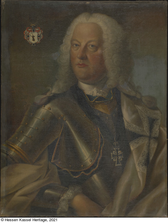 Beschriftungen: Aufkleber: Eigentum Univ. Museum Marburg L.; Stempel: Museum der Universität Marburg/L. (Aufkleber); Aufkleber: Gen. Katal. No. 11291; Aufkleber: Löwenburg 1921; Aufkleber: Unbekannter Maler, Christian Friedrich von Brand. (geb. 30.8.1687 in Brüssau/Neumark, gest. 1746 in Duncastle/England) 1730 Eintritt i. d. DO. 1741 Komtur in Schiffenberg.