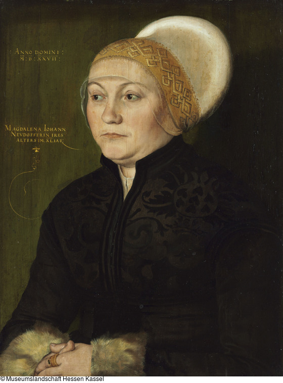 Signatur: ANNO DOMINI : / M : D : XXVII: / MAGDALENA IOHANN / NEVDFFERIN IRES / ALTERS IM.XL.IAR